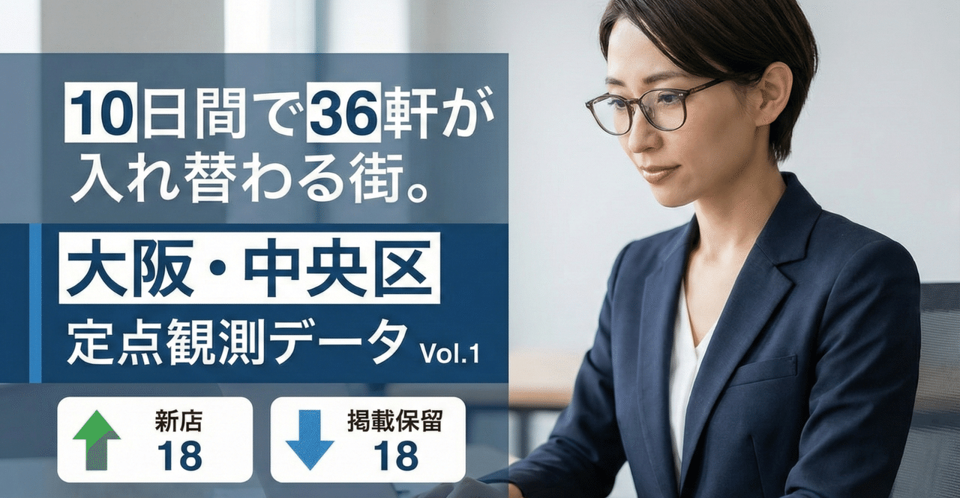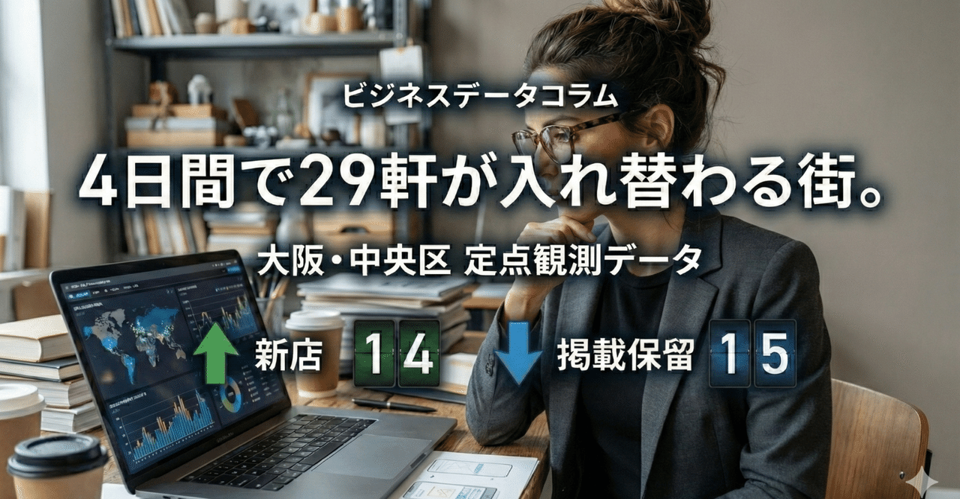 noteにて、大阪市中央区の店舗新陳代謝に関する最新レポートを公開しました。詳細なデータ分析はこちらをご覧ください。